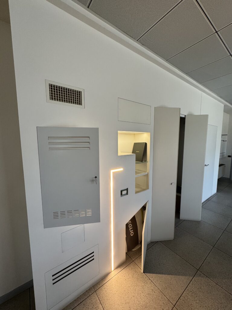 Il sistema rasoparete è una soluzione architettonica progettata per integrare elementi funzionali (porte, vani tecnici, armadiature, botole, ecc.) all’interno delle superfici murarie, garantendo la massima continuità visiva tra elemento e parete. Il risultato finale è una finitura a filo muro, priva di cornici o stipiti a vista.